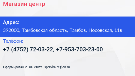 Магазин-центр по адресу 392000, Тамбовская область, Тамбов, Носовская, 11в в дальнейшем Организация, размещена в следующих категориях: