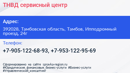 ТНВД, сервисный центр по адресу 392028, Тамбовская область, Тамбов, Ипподромный проезд, 24г в дальнейшем Организация, размещена в следующих категориях: