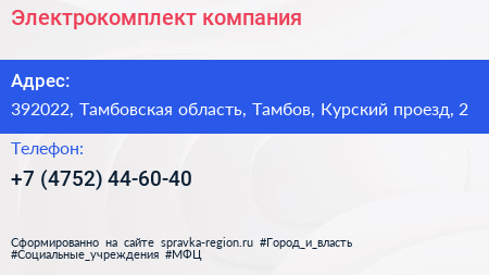Электрокомплект, компания по адресу 392022, Тамбовская область, Тамбов, Курский проезд, 2 в дальнейшем Организация, размещена в следующих категориях: