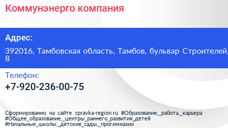 Коммунэнерго, компания по адресу 392016, Тамбовская область, Тамбов, бульвар Строителей, 8 в дальнейшем Организация, размещена в следующих категориях: