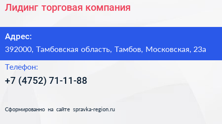 Лидинг, торговая компания по адресу 392000, Тамбовская область, Тамбов, Московская, 23а в дальнейшем Организация, размещена в следующих категориях: