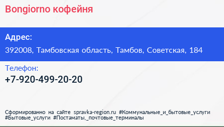 Bongiorno, кофейня по адресу 392008, Тамбовская область, Тамбов, Советская, 184 в дальнейшем Организация, размещена в следующих категориях: