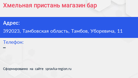 Хмельная пристань, магазин-бар по адресу 392023, Тамбовская область, Тамбов, Уборевича, 11 в дальнейшем Организация, размещена в следующих категориях: