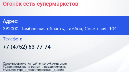 Огонёк, сеть супермаркетов по адресу 392000, Тамбовская область, Тамбов, Советская, 104 в дальнейшем Организация, размещена в следующих категориях: