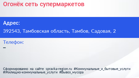 Огонёк, сеть супермаркетов по адресу 392543, Тамбовская область, Тамбов, Садовая, 2 в дальнейшем Организация, размещена в следующих категориях: