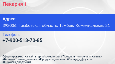 Пекарня №1 по адресу 392036, Тамбовская область, Тамбов, Коммунальная, 21 в дальнейшем Организация, размещена в следующих категориях: