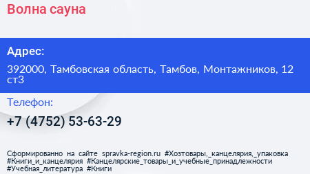 Волна, сауна по адресу 392000, Тамбовская область, Тамбов, Монтажников, 12 ст3 в дальнейшем Организация, размещена в следующих категориях: