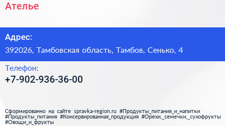 Ателье по адресу 392026, Тамбовская область, Тамбов, Сенько, 4 в дальнейшем Организация, размещена в следующих категориях: