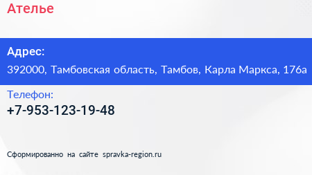 Ателье по адресу 392000, Тамбовская область, Тамбов, Карла Маркса, 176а в дальнейшем Организация, размещена в следующих категориях: