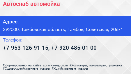 Автоснаб, автомойка по адресу 392000, Тамбовская область, Тамбов, Советская, 206/1 в дальнейшем Организация, размещена в следующих категориях: