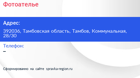 Фотоателье по адресу 392036, Тамбовская область, Тамбов, Коммунальная, 28/30 в дальнейшем Организация, размещена в следующих категориях: