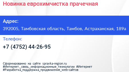 Новинка, еврохимчистка-прачечная по адресу 392005, Тамбовская область, Тамбов, Астраханская, 189а в дальнейшем Организация, размещена в следующих категориях: