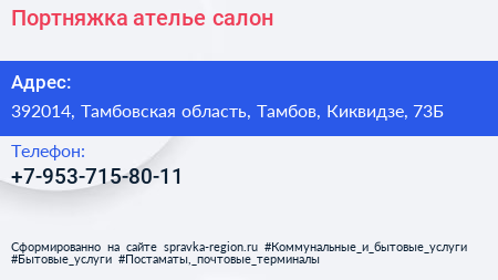 Портняжка, ателье-салон по адресу 392014, Тамбовская область, Тамбов, Киквидзе, 73Б в дальнейшем Организация, размещена в следующих категориях:
