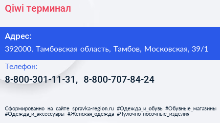 Qiwi, терминал по адресу 392000, Тамбовская область, Тамбов, Московская, 39/1 в дальнейшем Организация, размещена в следующих категориях: