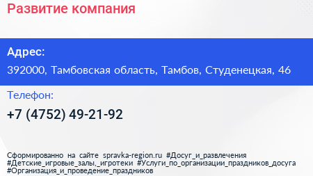 Развитие, компания по адресу 392000, Тамбовская область, Тамбов, Студенецкая, 46 в дальнейшем Организация, размещена в следующих категориях: