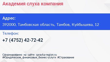 Академия слуха, компания по адресу 392000, Тамбовская область, Тамбов, Куйбышева, 12 в дальнейшем Организация, размещена в следующих категориях: