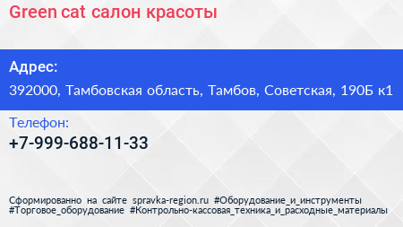 Green cat, салон красоты по адресу 392000, Тамбовская область, Тамбов, Советская, 190Б к1 в дальнейшем Организация, размещена в следующих категориях: