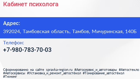 Кабинет психолога по адресу 392024, Тамбовская область, Тамбов, Мичуринская, 140Б в дальнейшем Организация, размещена в следующих категориях: