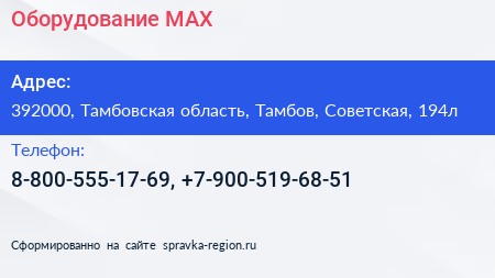 Оборудование MAX по адресу 392000, Тамбовская область, Тамбов, Советская, 194л в дальнейшем Организация, размещена в следующих категориях: