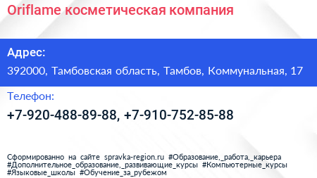Oriflame, косметическая компания по адресу 392000, Тамбовская область, Тамбов, Коммунальная, 17 в дальнейшем Организация, размещена в следующих категориях: