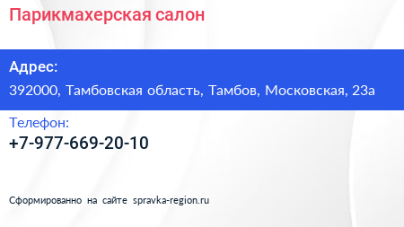 Парикмахерская-салон по адресу 392000, Тамбовская область, Тамбов, Московская, 23а в дальнейшем Организация, размещена в следующих категориях: