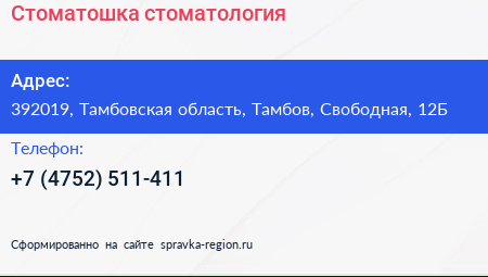 Стоматошка, стоматология по адресу 392019, Тамбовская область, Тамбов, Свободная, 12Б в дальнейшем Организация, размещена в следующих категориях:
