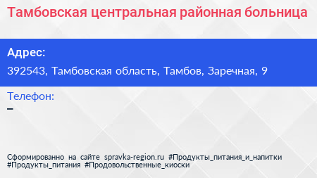 Тамбовская центральная районная больница по адресу 392543, Тамбовская область, Тамбов, Заречная, 9 в дальнейшем Организация, размещена в следующих категориях:
