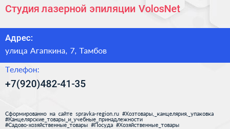 Студия лазерной эпиляции VolosNet по адресу улица Агапкина, 7, Тамбов в дальнейшем Организация, размещена в следующих категориях: