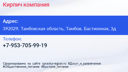 Кирпич, компания по адресу 392029, Тамбовская область, Тамбов, Бастионная, 3д в дальнейшем Организация, размещена в следующих категориях: