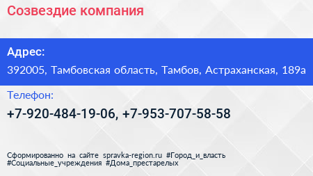 Созвездие, компания по адресу 392005, Тамбовская область, Тамбов, Астраханская, 189а в дальнейшем Организация, размещена в следующих категориях: