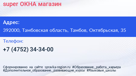 super ОКНА, магазин по адресу 392000, Тамбовская область, Тамбов, Октябрьская, 35 в дальнейшем Организация, размещена в следующих категориях: