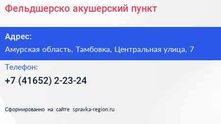 Фельдшерско-акушерский пункт по адресу Амурская область, Тамбовка, Центральная улица, 7 в дальнейшем Организация, размещена в следующих категориях: