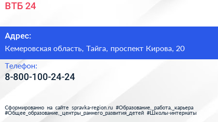 ВТБ 24 по адресу Кемеровская область, Тайга, проспект Кирова, 20 в дальнейшем Организация, размещена в следующих категориях: