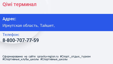 Qiwi, терминал по адресу Иркутская область, Тайшет, в дальнейшем Организация, размещена в следующих категориях:
