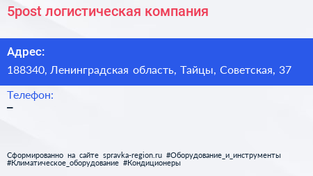 5post, логистическая компания по адресу 188340, Ленинградская область, Тайцы, Советская, 37 в дальнейшем Организация, размещена в следующих категориях: