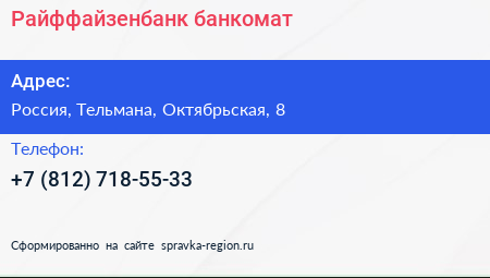 Райффайзенбанк, банкомат по адресу Торговый центр «Ока», Линия Обороны, Простоквашино, Колпино, Тельмановское городское поселение, Тосненский район, Санкт-Петербург, Северо-Западный федеральный округ, 187032, Россия в дальнейшем Организация, размещена в следующих категориях: