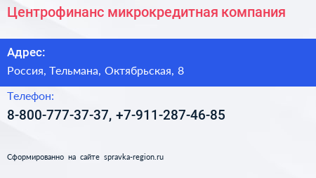 Центрофинанс, микрокредитная компания по адресу Торговый центр «Ока», Линия Обороны, Простоквашино, Колпино, Тельмановское городское поселение, Тосненский район, Санкт-Петербург, Северо-Западный федеральный округ, 187032, Россия в дальнейшем Организация, размещена в следующих категориях: