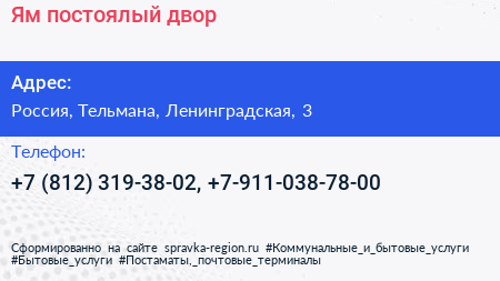 Ям, постоялый двор по адресу Ям, 3, Ленинградская улица, Ям-Ижора, Тельмановское городское поселение, Тосненский район, Ленинградская область, Северо-Западный федеральный округ, 187033, Россия в дальнейшем Организация, размещена в следующих категориях: