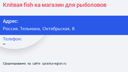 Клёвая fish`ка, магазин для рыболовов по адресу Торговый центр «Ока», Линия Обороны, Простоквашино, Колпино, Тельмановское городское поселение, Тосненский район, Санкт-Петербург, Северо-Западный федеральный округ, 187032, Россия в дальнейшем Организация, размещена в следующих категориях: