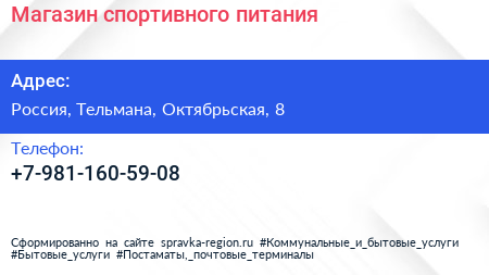 Магазин спортивного питания по адресу Торговый центр «Ока», Линия Обороны, Простоквашино, Колпино, Тельмановское городское поселение, Тосненский район, Санкт-Петербург, Северо-Западный федеральный округ, 187032, Россия в дальнейшем Организация, размещена в следующих категориях: