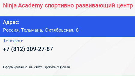 Ninja Academy, спортивно-развивающий центр по адресу Торговый центр «Ока», Линия Обороны, Простоквашино, Колпино, Тельмановское городское поселение, Тосненский район, Санкт-Петербург, Северо-Западный федеральный округ, 187032, Россия в дальнейшем Организация, размещена в следующих категориях: