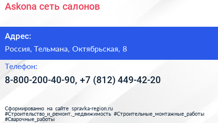 Askona, сеть салонов по адресу Торговый центр «Ока», Линия Обороны, Простоквашино, Колпино, Тельмановское городское поселение, Тосненский район, Санкт-Петербург, Северо-Западный федеральный округ, 187032, Россия в дальнейшем Организация, размещена в следующих категориях: