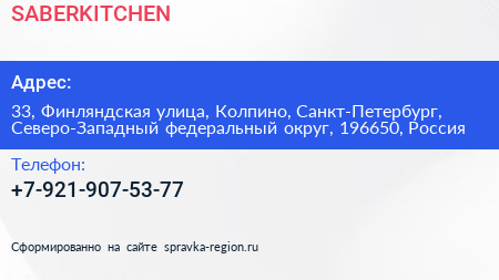 SABERKITCHEN по адресу 33, Финляндская улица, Колпино, Санкт-Петербург, Северо-Западный федеральный округ, 196650, Россия в дальнейшем Организация, размещена в следующих категориях: