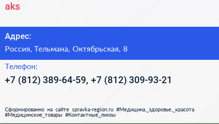 aks! по адресу Торговый центр «Ока», Линия Обороны, Простоквашино, Колпино, Тельмановское городское поселение, Тосненский район, Санкт-Петербург, Северо-Западный федеральный округ, 187032, Россия в дальнейшем Организация, размещена в следующих категориях:
