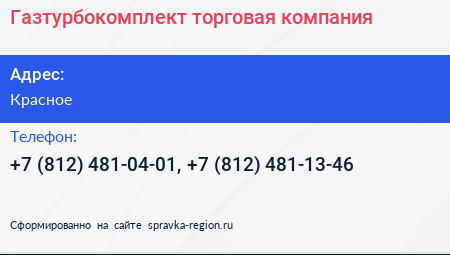 Газтурбокомплект, торговая компания по адресу Красное в дальнейшем Организация, размещена в следующих категориях: