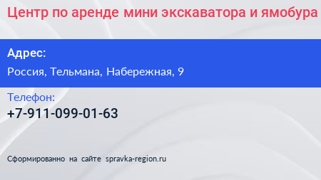 Центр по аренде мини-экскаватора и ямобура по адресу 9, Набережная улица, Ям-Ижора, Тельмановское городское поселение, Тосненский район, Ленинградская область, Северо-Западный федеральный округ, 187033, Россия в дальнейшем Организация, размещена в следующих категориях: