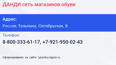 ДАНДИ, сеть магазинов обуви по адресу Торговый центр «Ока», Линия Обороны, Простоквашино, Колпино, Тельмановское городское поселение, Тосненский район, Санкт-Петербург, Северо-Западный федеральный округ, 187032, Россия в дальнейшем Организация, размещена в следующих категориях: