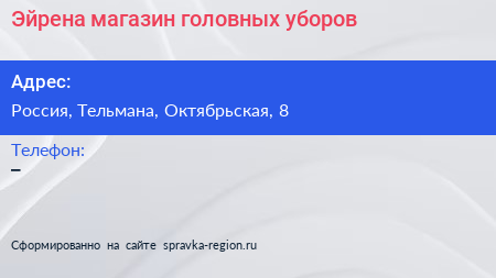 Эйрена, магазин головных уборов по адресу Торговый центр «Ока», Линия Обороны, Простоквашино, Колпино, Тельмановское городское поселение, Тосненский район, Санкт-Петербург, Северо-Западный федеральный округ, 187032, Россия в дальнейшем Организация, размещена в следующих категориях: