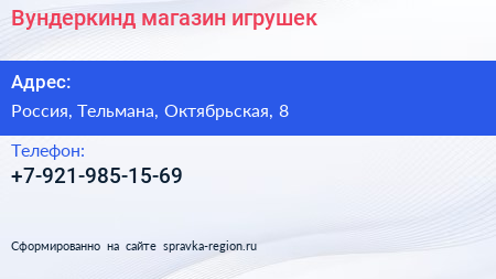 Вундеркинд, магазин игрушек по адресу Торговый центр «Ока», Линия Обороны, Простоквашино, Колпино, Тельмановское городское поселение, Тосненский район, Санкт-Петербург, Северо-Западный федеральный округ, 187032, Россия в дальнейшем Организация, размещена в следующих категориях: