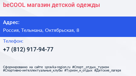 #beCOOL, магазин детской одежды по адресу Торговый центр «Ока», Линия Обороны, Простоквашино, Колпино, Тельмановское городское поселение, Тосненский район, Санкт-Петербург, Северо-Западный федеральный округ, 187032, Россия в дальнейшем Организация, размещена в следующих категориях: